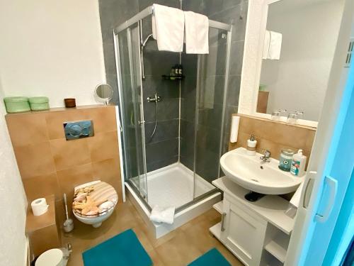 Das Apartment besteht aus 1 separaten Schlafzimmer, 1 Badezimmer mit Hausschuhen und einem Haartrockner sowie einem Sitzbereich. Handtücher und Bettwäsche werden gestellt.