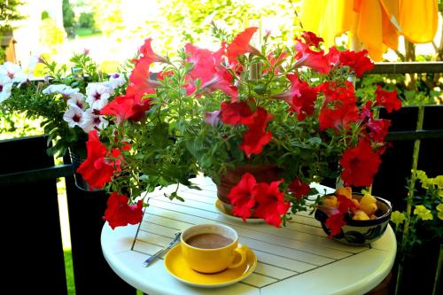 Im Wohnen bei Helga erwartet Sie bei der Ankunft eine Flasche Wasser. Eine Tasse Tee oder Kaffee sowie Kekse erhalten Sie jeden Morgen kostenlos. Gegen einen kleinen täglichen Aufpreis können Sie auch jeden Morgen ein großes Frühstück genießen.